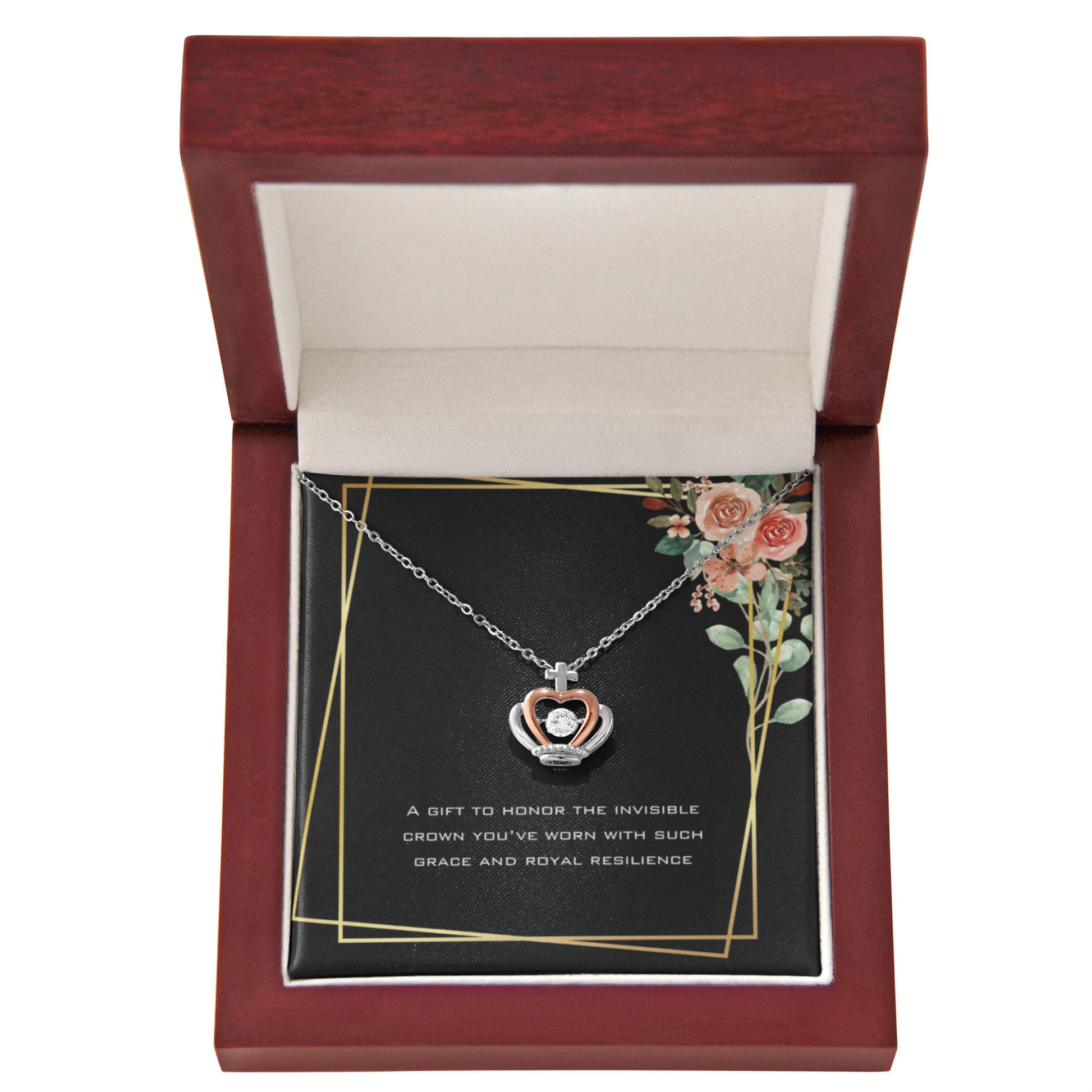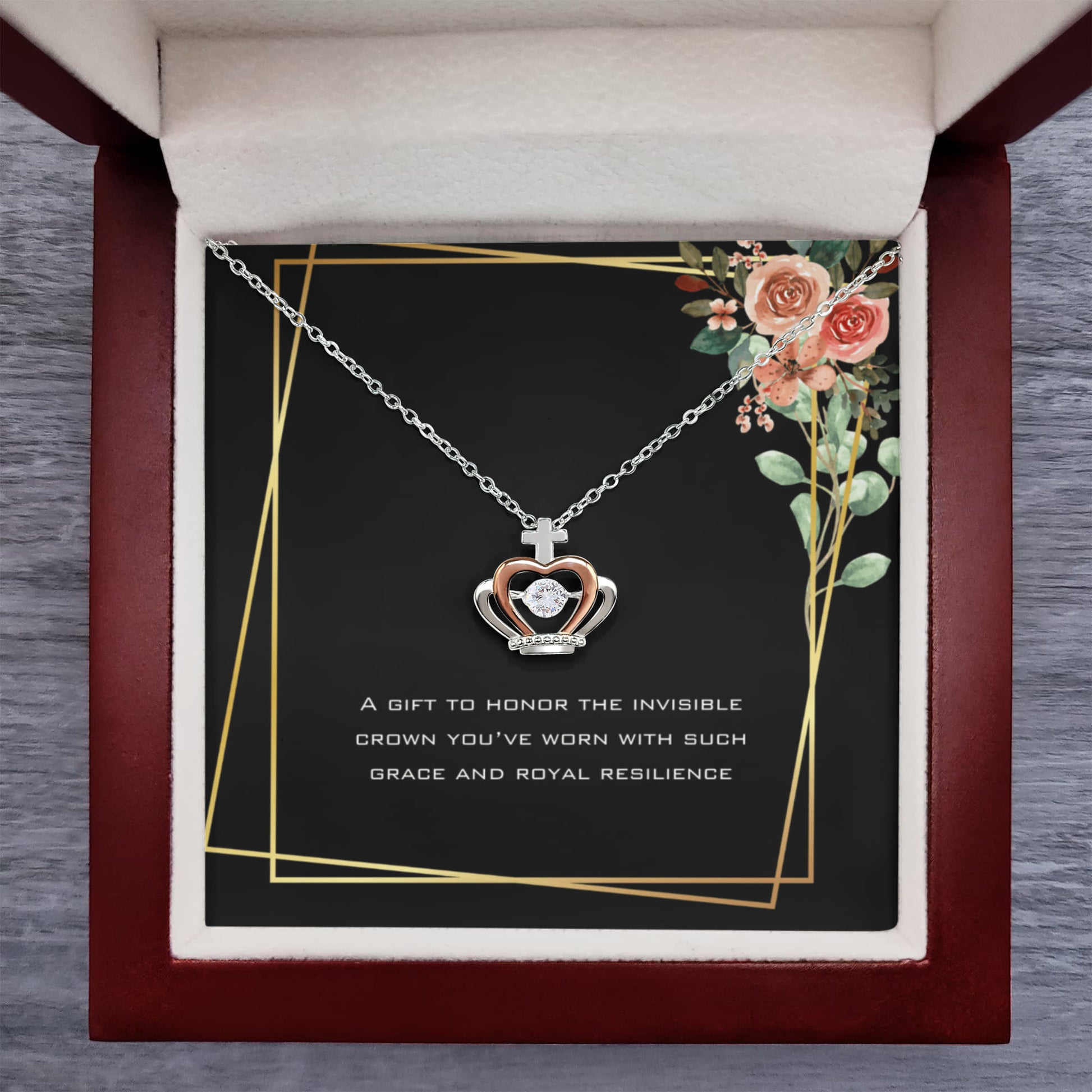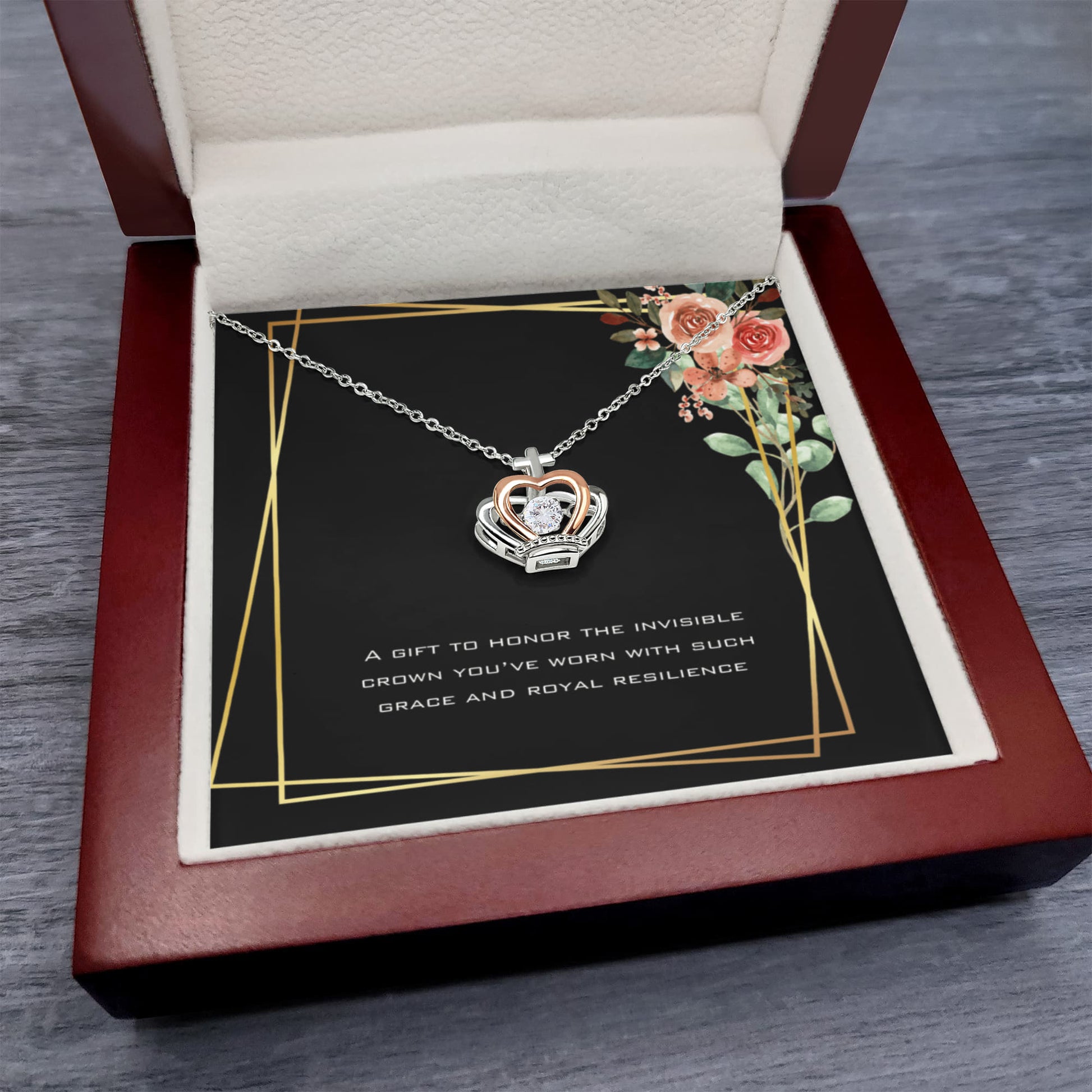 This Crown Pendant Necklace resembles a regal crown and made exquisite with the cubic zirconia crystal at its center, catching the light with every movement. The delicate blend of silver and rose gold tones adds a touch of timeless beauty, making it the perfect gift for someone who reigns over your heart.