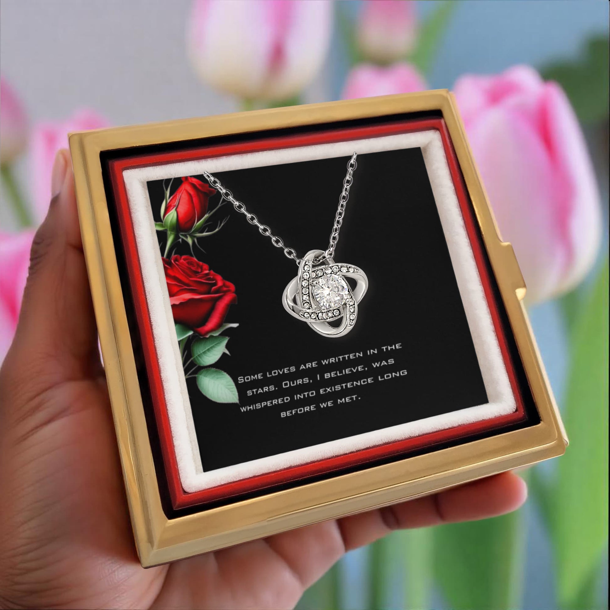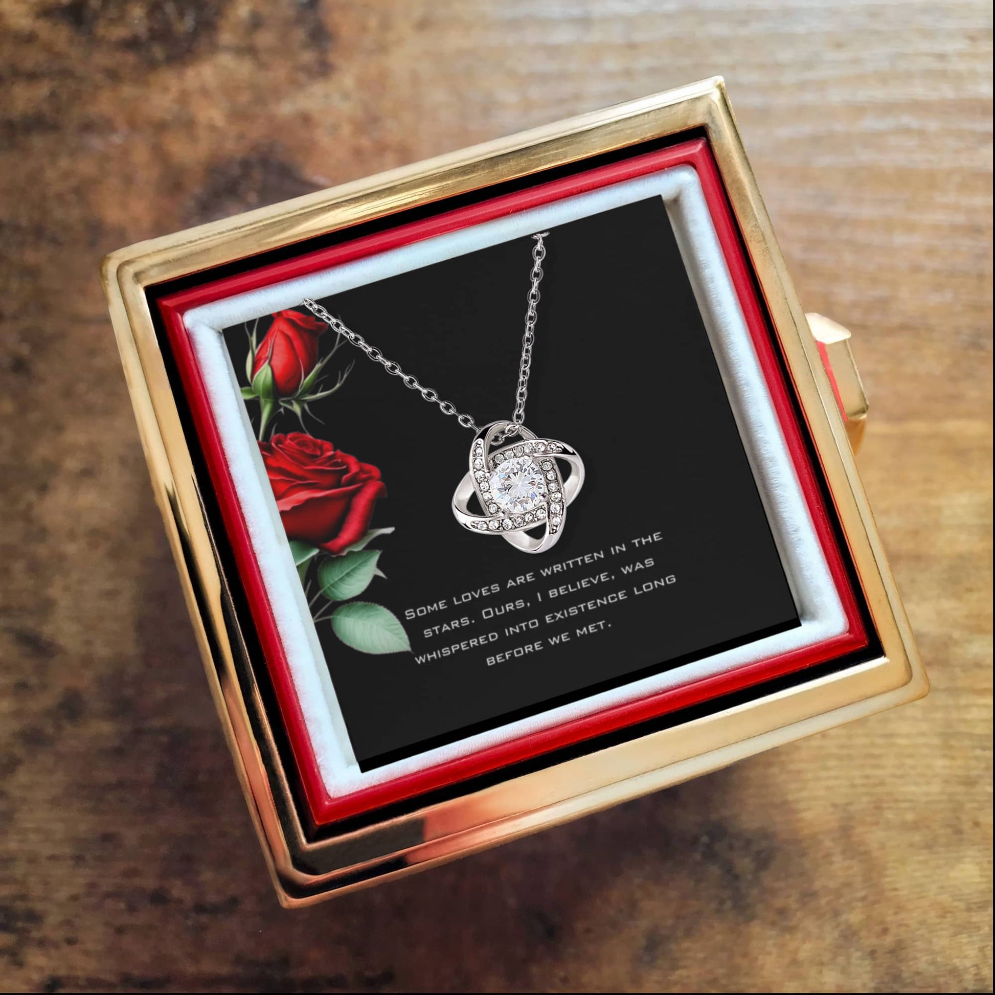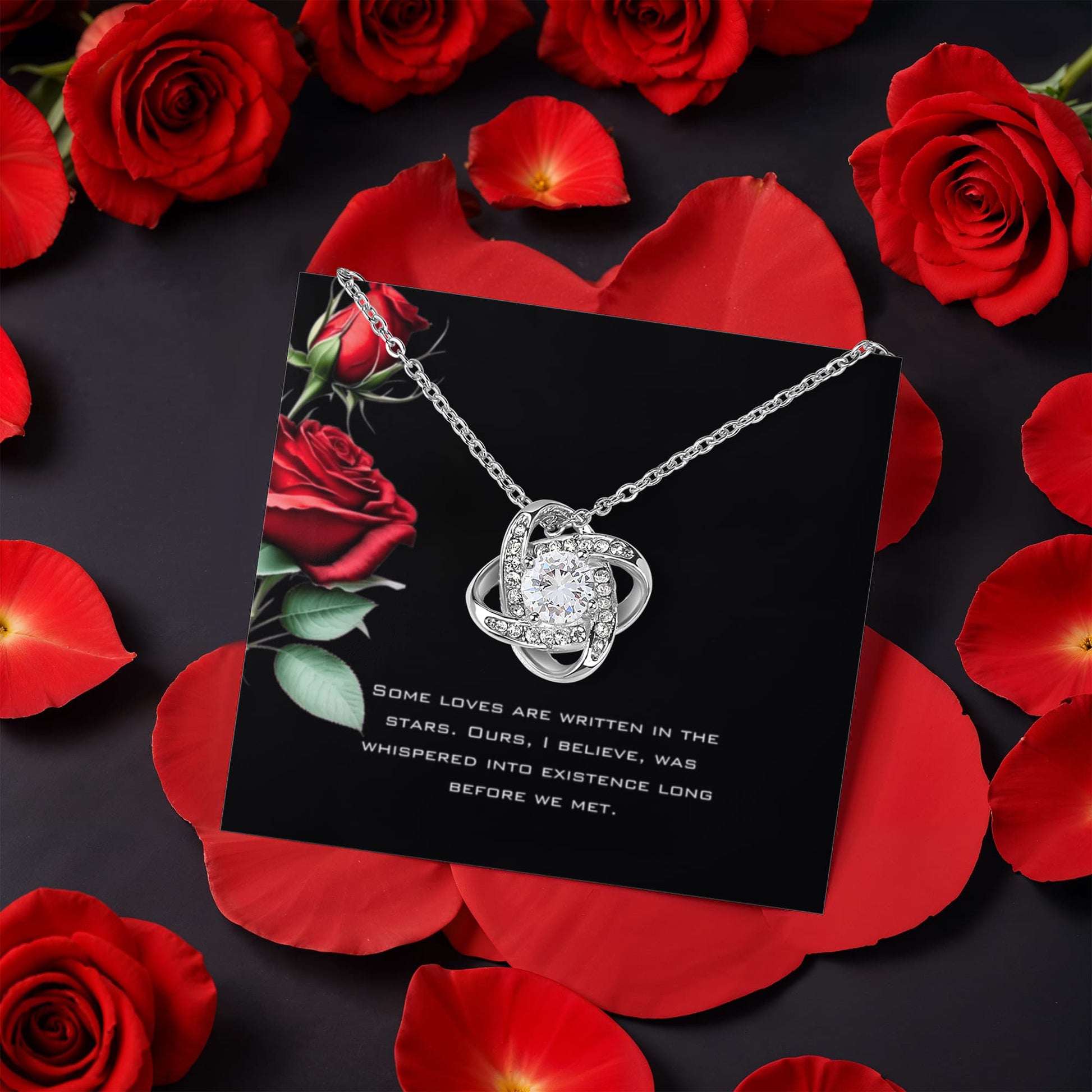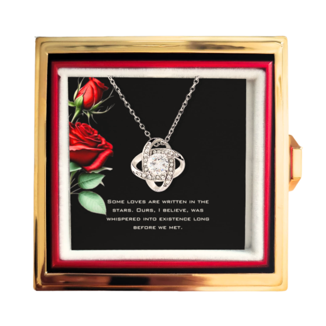 Imagine her reaction as she receives this beautiful Love Knot Necklace. Representing an unbreakable bond between two souls, this stunning pendant is adorned with premium cubic zirconia crystals, making it a timeless symbol of love and devotion.