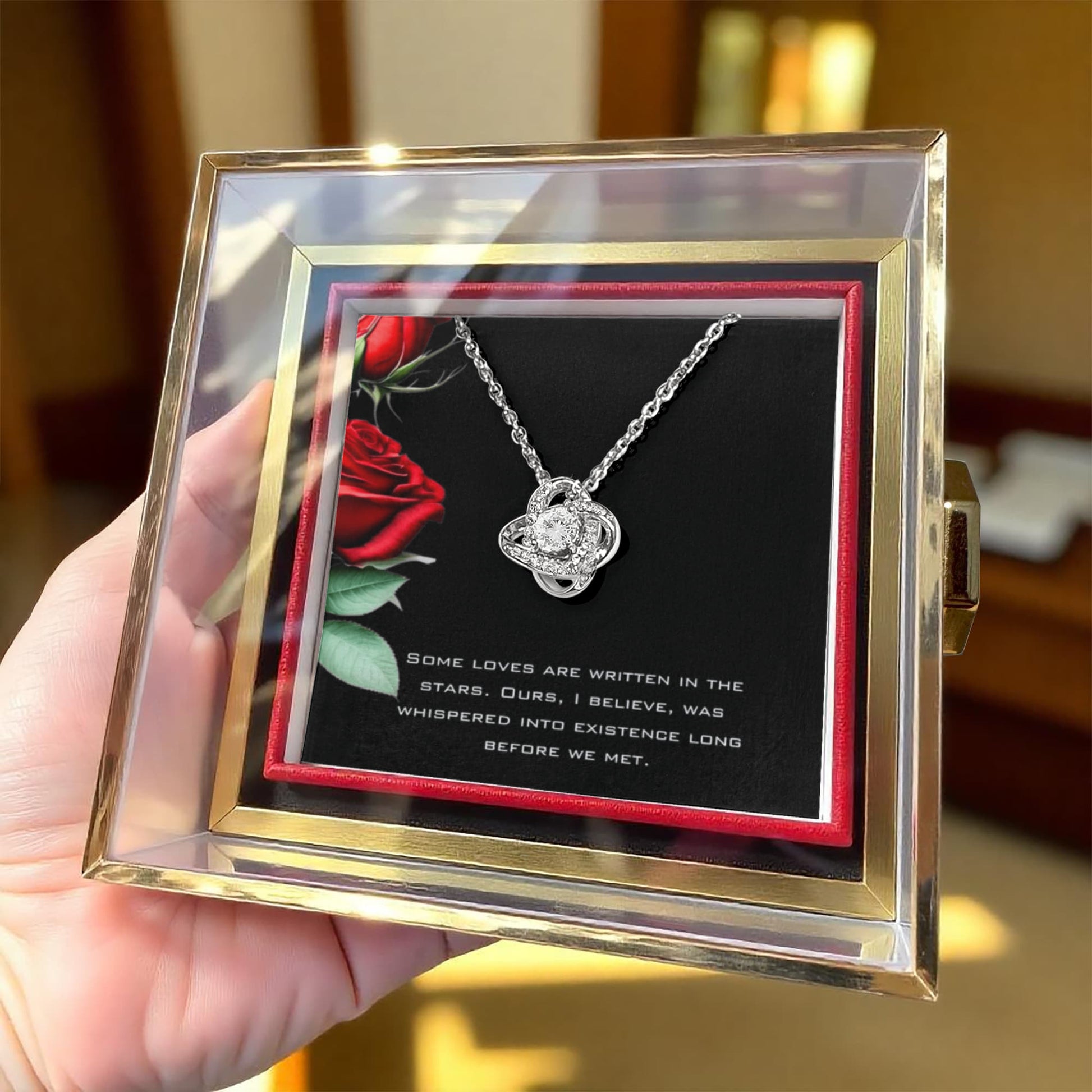 Each necklace comes in a beautiful, Mahogany Gift Box with an LED Light, perfect for gifting.