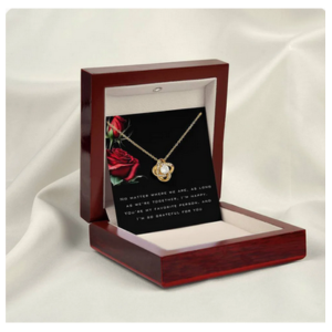 This Love Knot Necklace is a bond between two souls. It symbolizes an unbreakable bond and the eternal connection of true love. Its graceful design and timeless sparkle make it the perfect gift for someone who holds your heart.